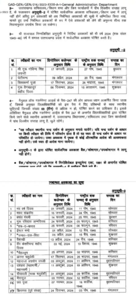 उत्तराखंड सरकार ने जारी किया 2024 की छुट्टियों का कलेंडर