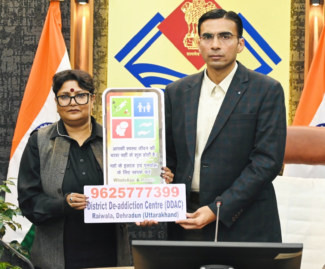 जिलाधिकारी के प्रयासों से देहरादून में रायवाला ओल्ड एज होम में 30 बैडेड नशा मुक्ति एवं मानसिक स्वास्थ्य केंद्र का संचालन किया जा रहा है। इस सेंटर में अभी 04 ड्रग्स एडिक्ट भर्ती है। जिला प्रशासन ने एम्स से एमओयू करते हुए सातों दिन एम्स में 10 बेड इंटेंसिव थेरेपी के लिए रिजर्व भी किए है। नशे के संकट को दूर करने के लिए जिला प्रशासन ने अपना एंटी ड्रग्स हेल्पलाइन नंबर 9625777399 भी बनवाया है।