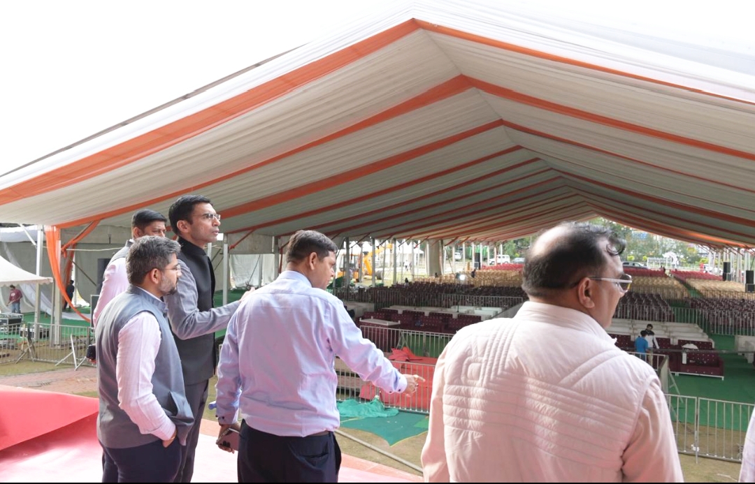 आयुक्त ने अधिकारियों को अपने दायित्वों का गंभीरता से निर्वहन करते हुए बेहतर समन्वय स्थापित करने पर बल दिया। निरीक्षण के दौरान मुख्य मंच, बैठने की व्यवस्था, बैरिकेडिंग, प्रकाश, एलईडी स्क्रीन, साउंड सिस्टम, यातायात एवं पार्किंग व्यवस्थाओं का गहन अवलोकन किया गया। उन्होंने निर्देशित किया कि मिनट-टू-मिनट कार्यक्रम के अनुरूप सभी व्यवस्थाएं सुनिश्चित की जाएं तथा विद्युत एवं साउंड सिस्टम के लिए पर्याप्त बैकअप रखा जाए।